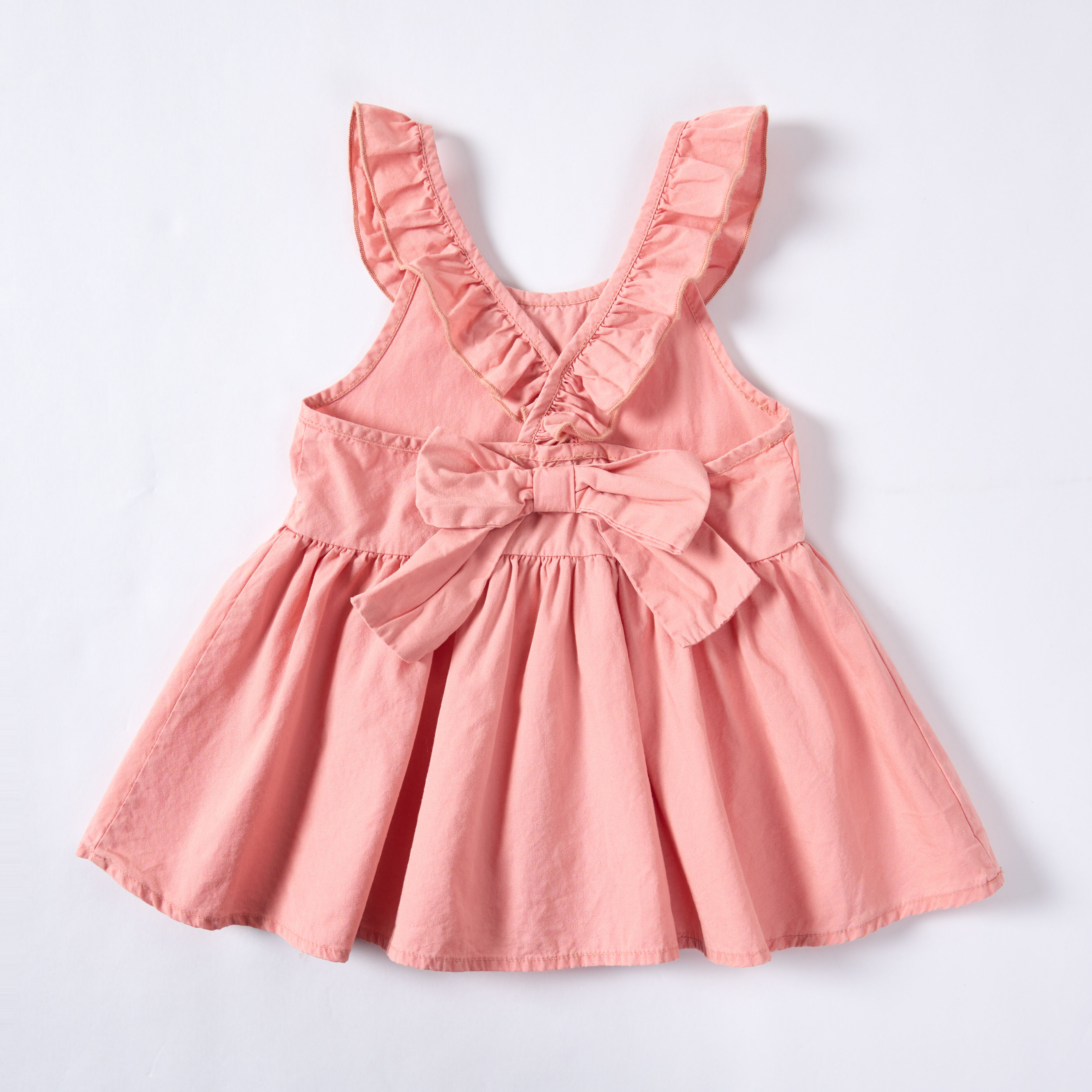 فستان أطفال بدون أكمام بياقة منفوشة مصبوغ باللون الوردي باستخدام خشب السبانخ والمنجل