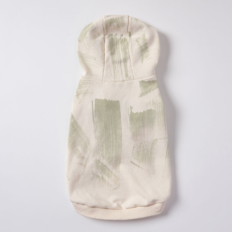This hoodie features a contemporary abstract print that elevates it beyond typical pet apparel. The pattern resembles subtle brushstrokes or watercolor washes, offering a refined and artistic aesthetic: