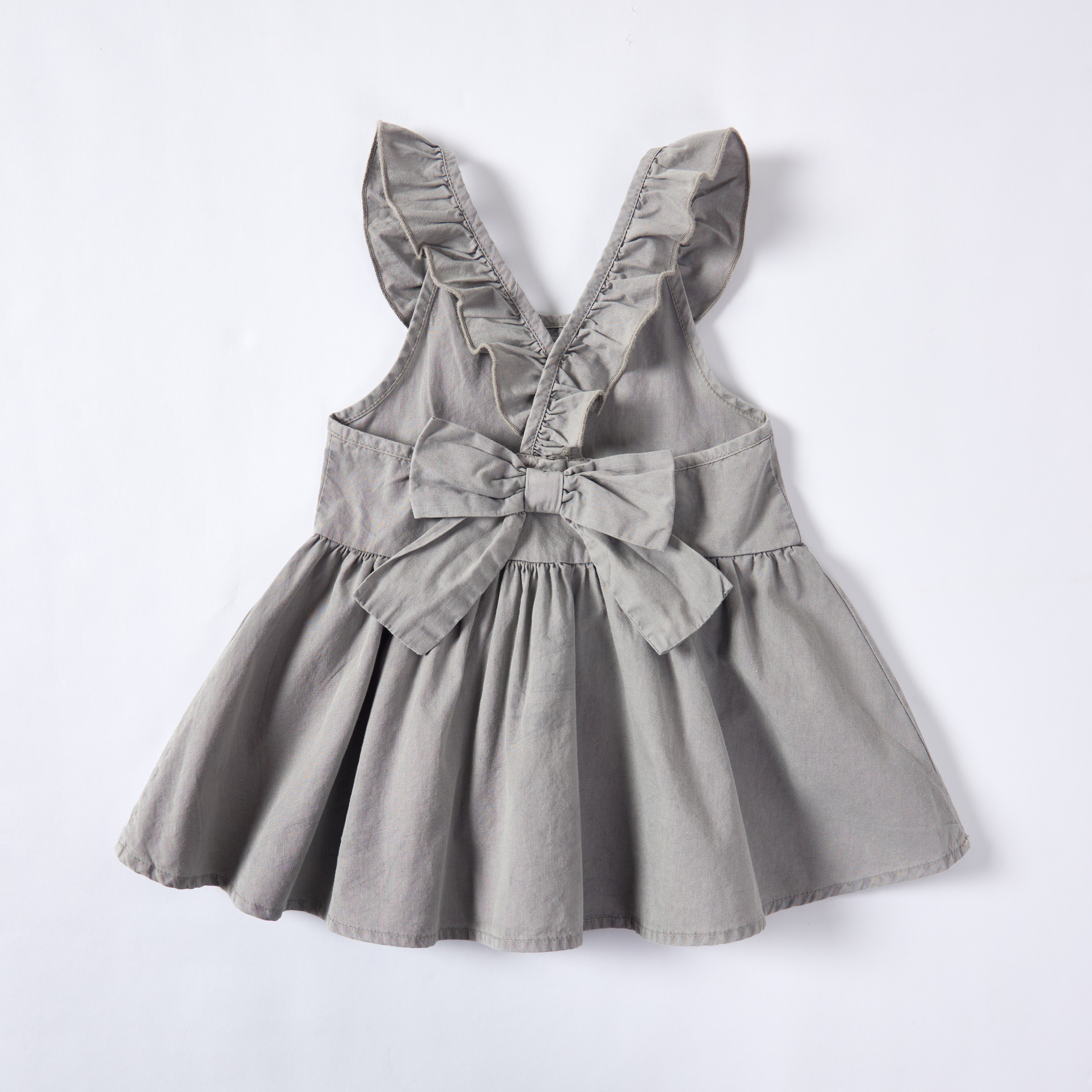 Gray Gallnut Pomegranate Peel Dyed Ruffle Collar Sleeveless Baby Dress