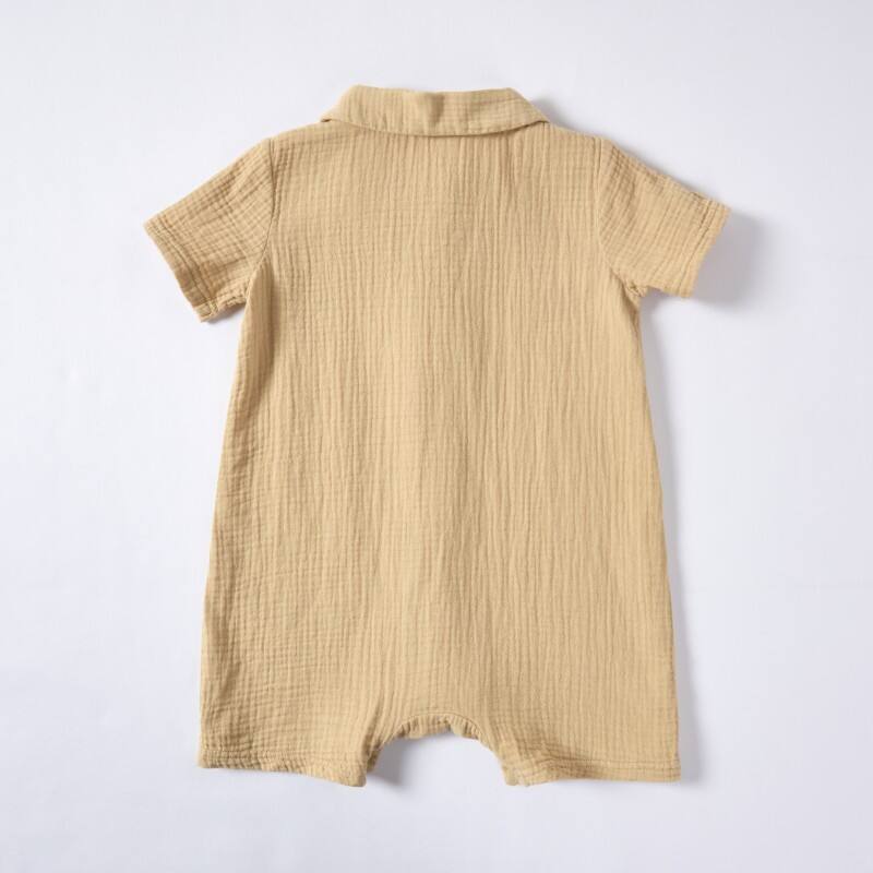 Khaki Sappanwood Pomegranate Peel Dyed Short-Sleeved Baby Romper