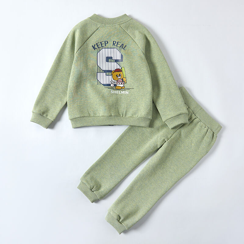 •Jacket: A classic baseball/bomber style with a full-zip front and raglan sleeves, allowing for maximum mobility during play. The subtle, embroidered bear motif on the chest, along with the "SHELMIN" text, adds a touch of playful, sporty charm. Practical pockets keep little hands warm and store treasures.