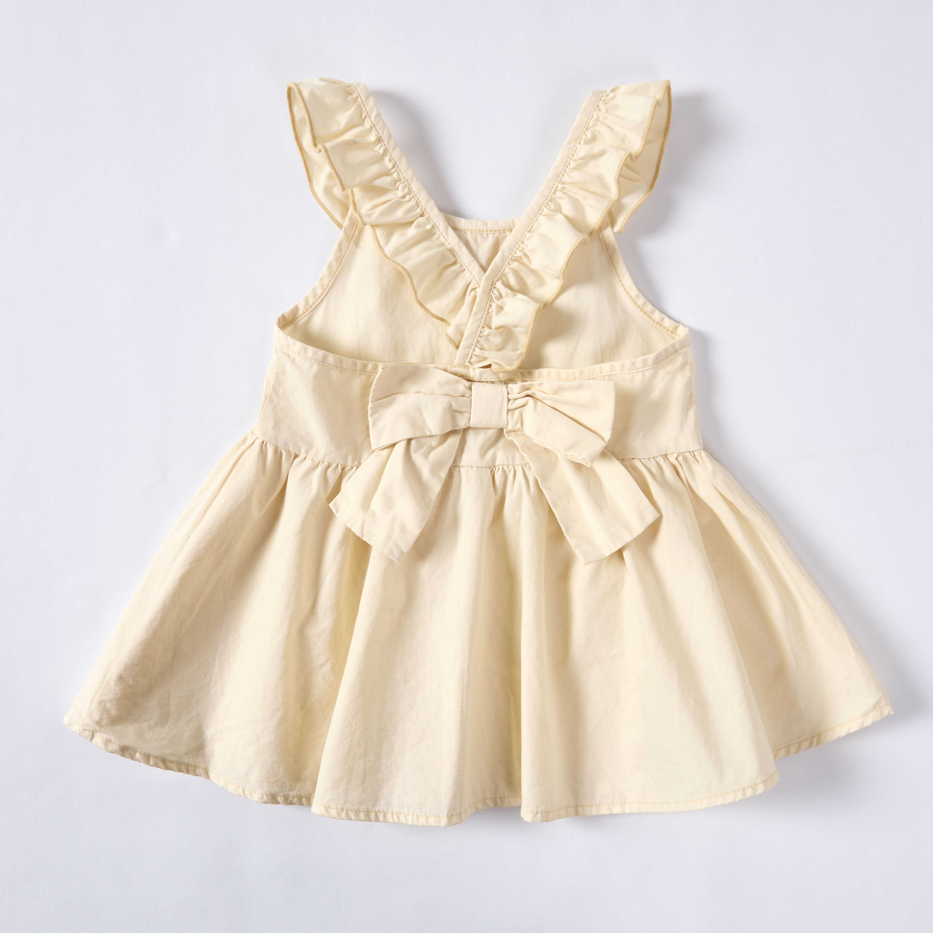 Light Yellow Sappanwood Madder Pomegranate Peel Dyed Ruffle Collar Sleeveless Baby Dress