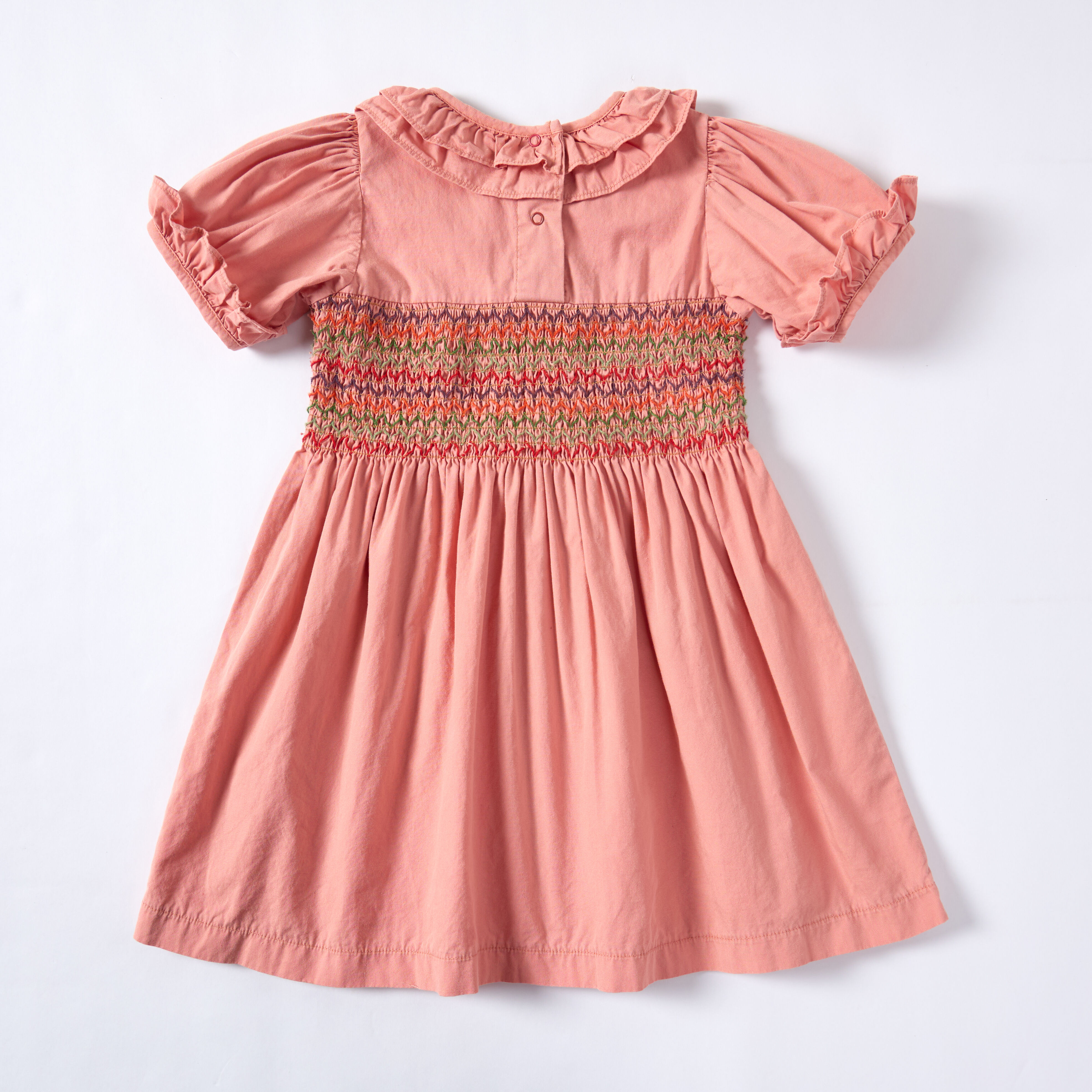 Orange-Pink Short-Sleeved Embroidered Smock Dress Dyed with Sappanwood Madder Pomegranate Peel