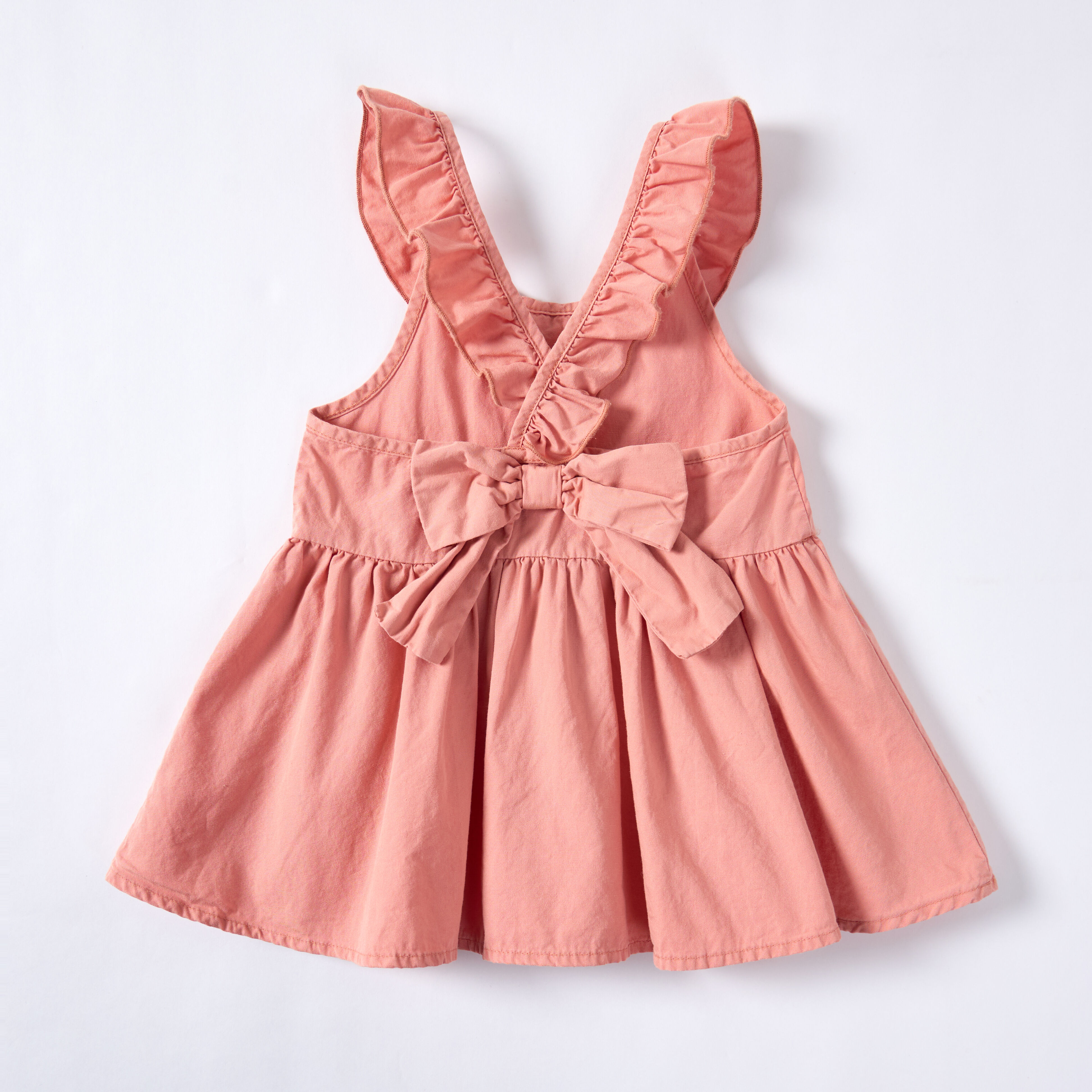 Orange-Pink Sleeveless Ruffle Collar Baby Dress Dyed with Sappanwood Madder Pomegranate Peel