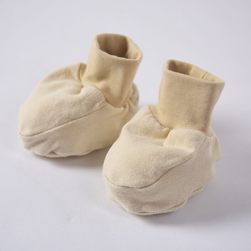 Our booties feature a soft, appealing color achieved through a dedicated plant-dyeing process. This method ensures that the fabric is free from the harsh chemicals and synthetic colorants that can irritate a baby's delicate skin. The natural, subtle hues offer a premium, artisanal look that differentiates your product line. By choosing plant-dyed apparel, your brand reinforces its commitment to ecological integrity and baby safety.