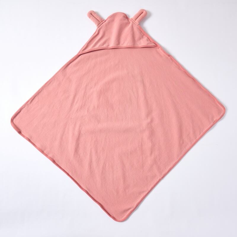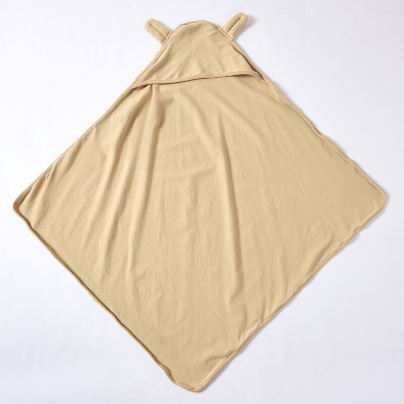 The unique design of this wrap is centered on both aesthetics and practicality. The generous square shape provides ample fabric for secure swaddling, while the integrated hood offers extra warmth and a charming, adorable touch with its subtle ear detailing. This functional yet delightful design makes the wrap an ideal gift item and a versatile staple for the nursery, appealing to customers who value both form and function in baby essentials.
