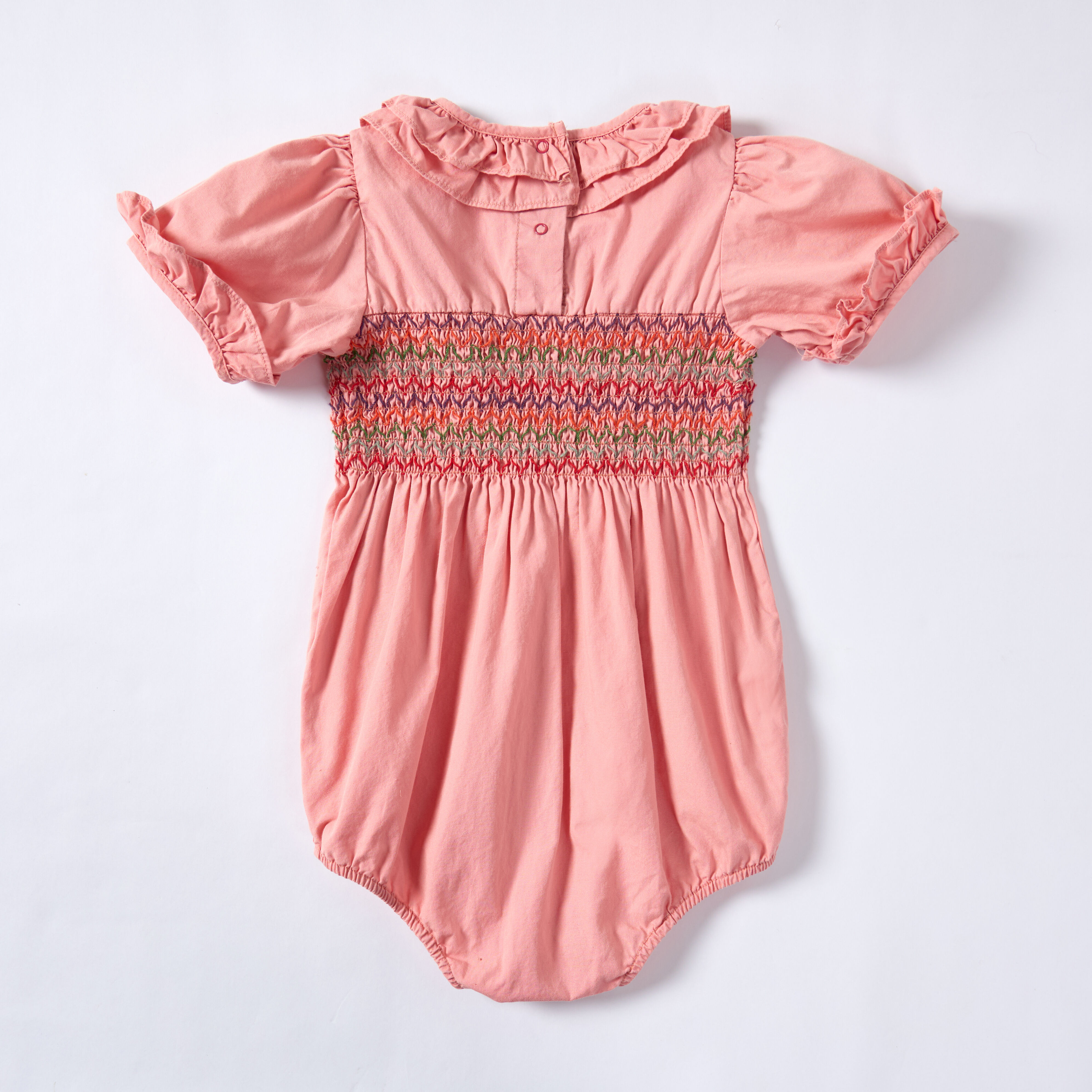 Pink Sappanwood and Madder Dyed Short-Sleeved Embroidered Baby Rompers
