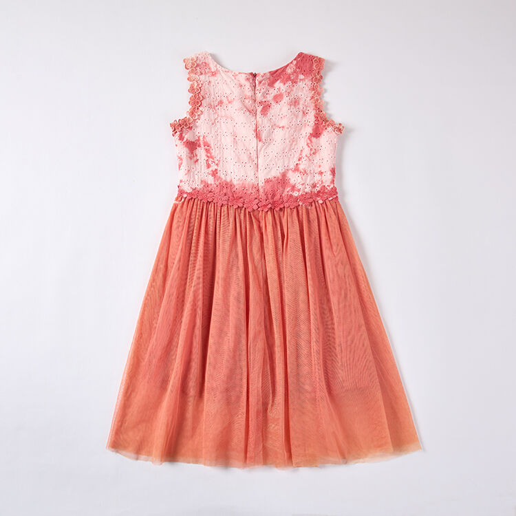 Sukienka z haftem oczkowym i tiulą w odcieniach ombré barwiona roślinnie do personalizacji marki