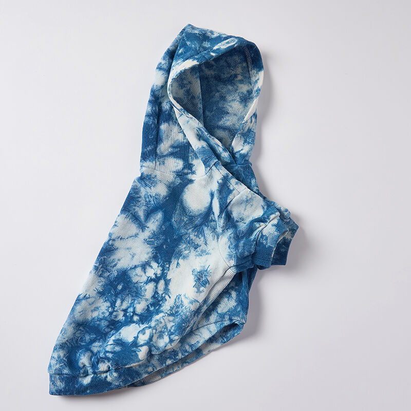 Wholesale plant-dyed tie-dye dog hoodies. Eco-friendly, non-toxic pet apparel with unique design. Perfect for brands seeking sustainable and custom pet clothing.