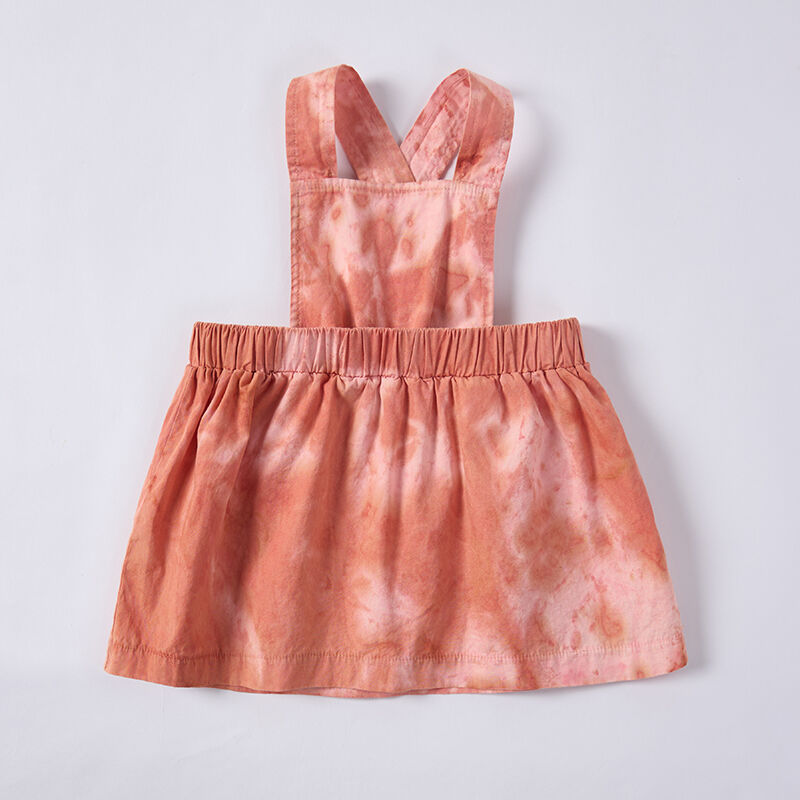 Tie-dye Orange-Pink Baby Overall Dresses Dyed with Sappanwood Madder Pomegranate Peel