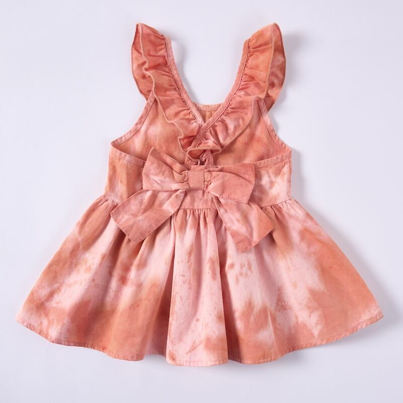 Tie-dye Orange-Pink Ruffle Collar Sleeveless Baby Dress Dyed with Sappanwood Madder Pomegranate Peel