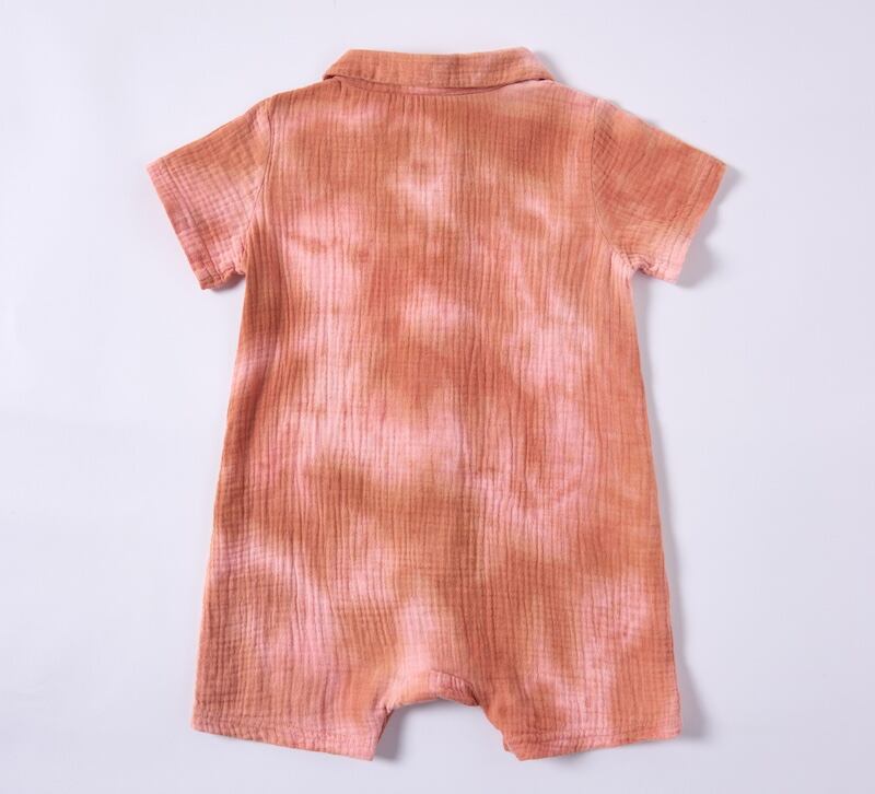 Tie-dye Orange-Pink Short-Sleeved Baby Romper Dyed with Sappanwood Madder Pomegranate Peel